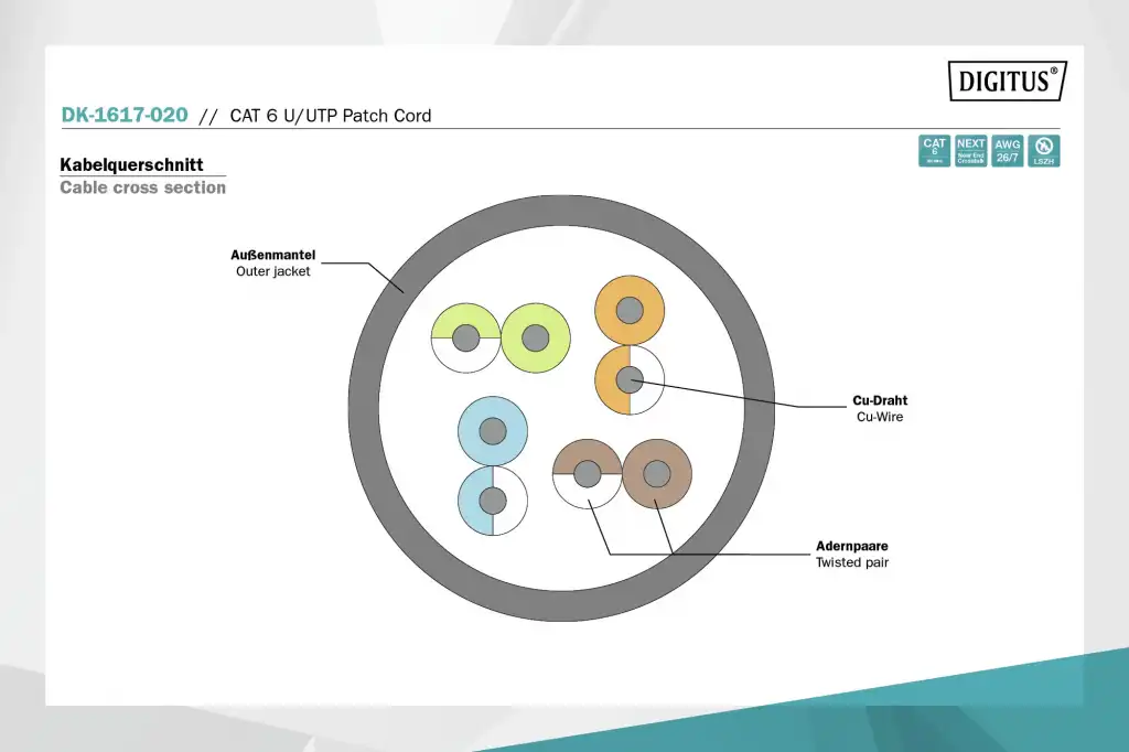 | DIGITUS® Kategori 6 Sınıf E bağlantı kabloları, ISO / IEC 11801 ve DIN EN 50173 CAT 6 standardına göre üretilir ve test edilir. Kablo kurulumunun ISO ve EN Kanal spesifikasyonuna uygun olduğunu garanti ederler ve DIGITUS® CAT 6 kablolamasında mükemmel performans sunarlar. |