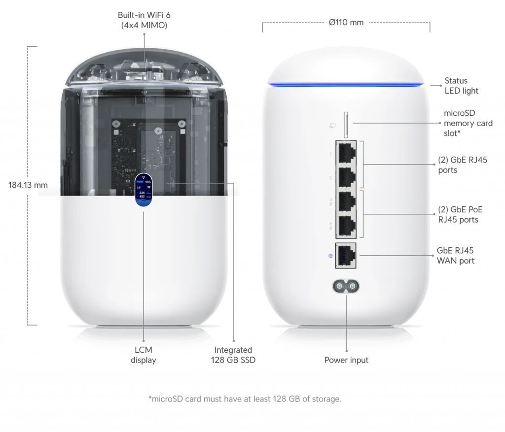 Entegre WiFi 6 ve PoE anahtarlamalı masaüstü UniFi Bulut Ağ Geçidi.