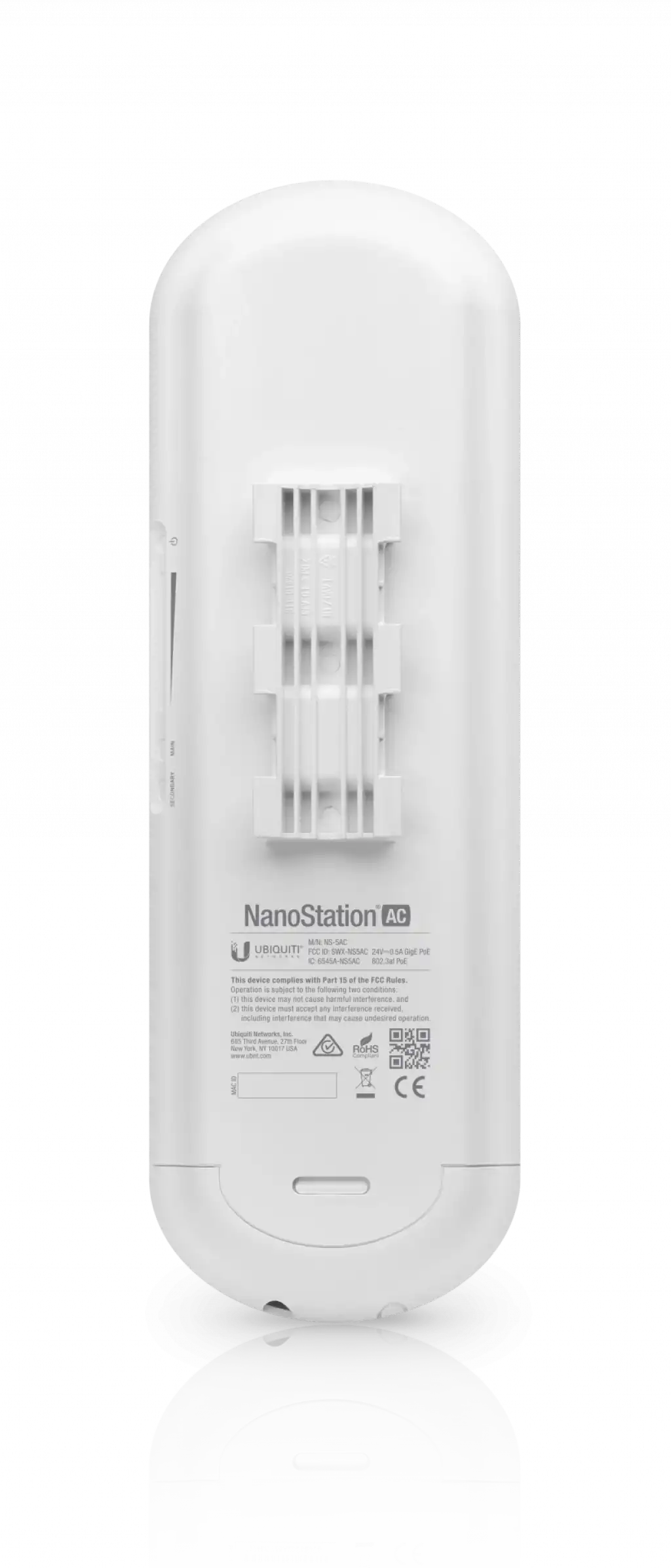 Ubiquiti NS-5AC Nanostation, airMAX teknolojisi ile donatılmış, çok verimli ve kompakt bir CPE istemci sonlandırmasıdır. NanoStation AC, 16dBi kazançlı ve 2 Gigabit Ethernet portlu entegre bir antene sahiptir.
