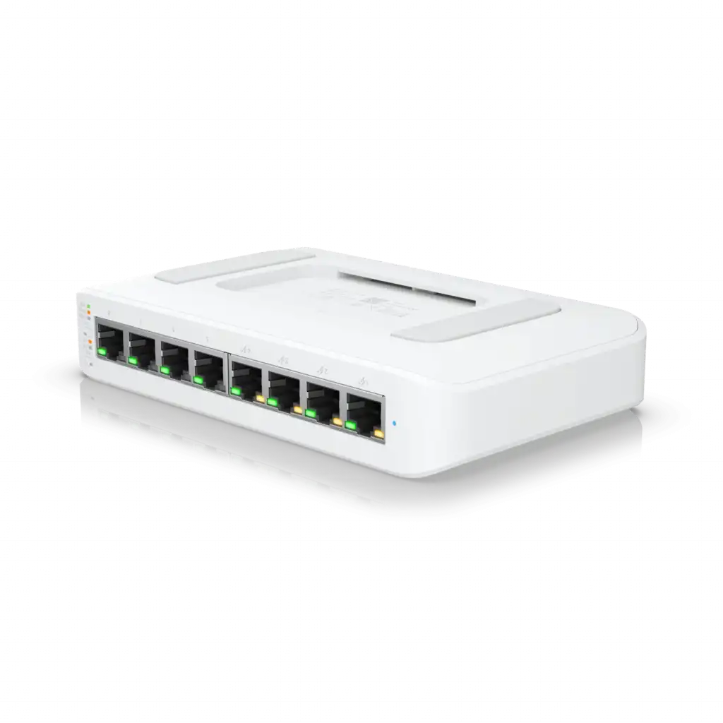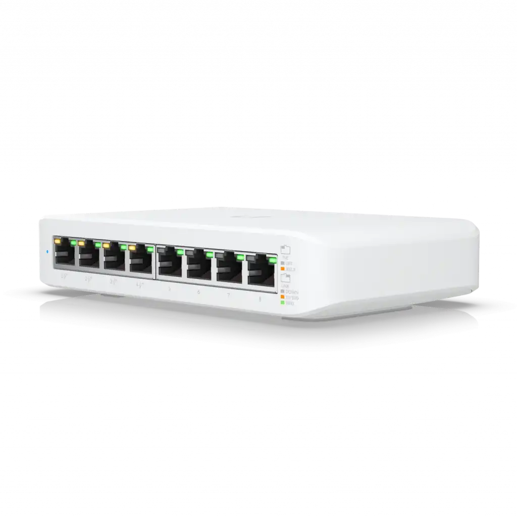 UbiQuiti USW Lite 8 PoE , RJ5 Ethernet cihazları için sekiz Gigabit Ethernet bağlantı noktasına sahip , tamamen yönetilen bir Katman 2 anahtarıdır . Anahtar ayrıca, UniFi erişim noktaları veya diğer PoE cihazları için toplam 52W PoE gücü sağlayan 802.3at PoE + otomatik algılama sunar. PoE gücü ve PoE Geçişi sayesinde, anahtar , PoE cihazlarına güç sağlayan bir adaptörle gerektiğinde yalnızca Ethernet bağlantı noktaları eklemek için idealdir.