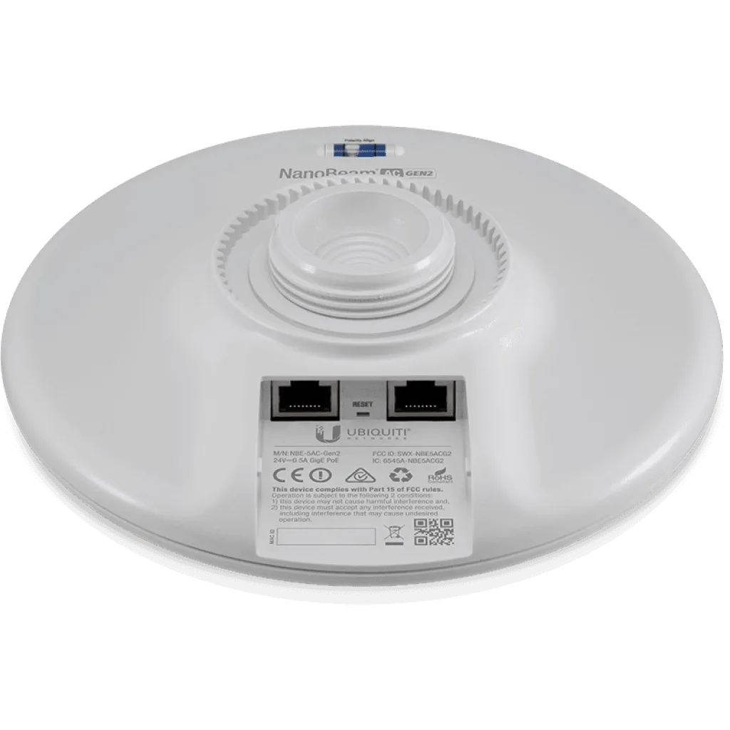 Ubiquiti NanoBeam AC Gen2, mümkün olan en küçük ayak izinden maksimum performans gerektiren CPE dağıtımları için ideal olan bir airMAX CPE'dir