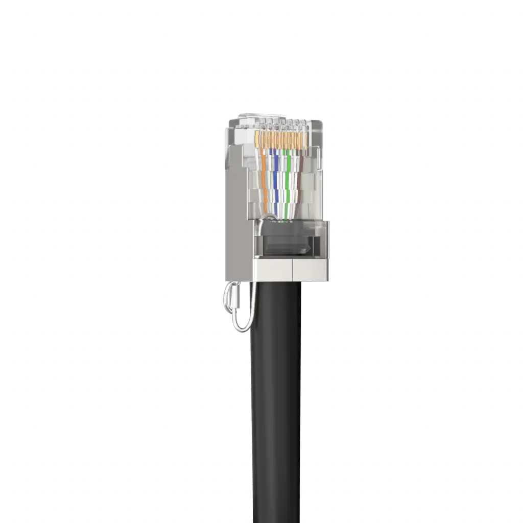 UISP Ethernet kabloları (UISP Kablo Pro ve Kablo Taşıyıcı) için korumalı RJ45 konektörleri. Her biri, doğrudan UISP kablosunun boşaltma teline bağlanan bir kanca ile donatılmıştır.