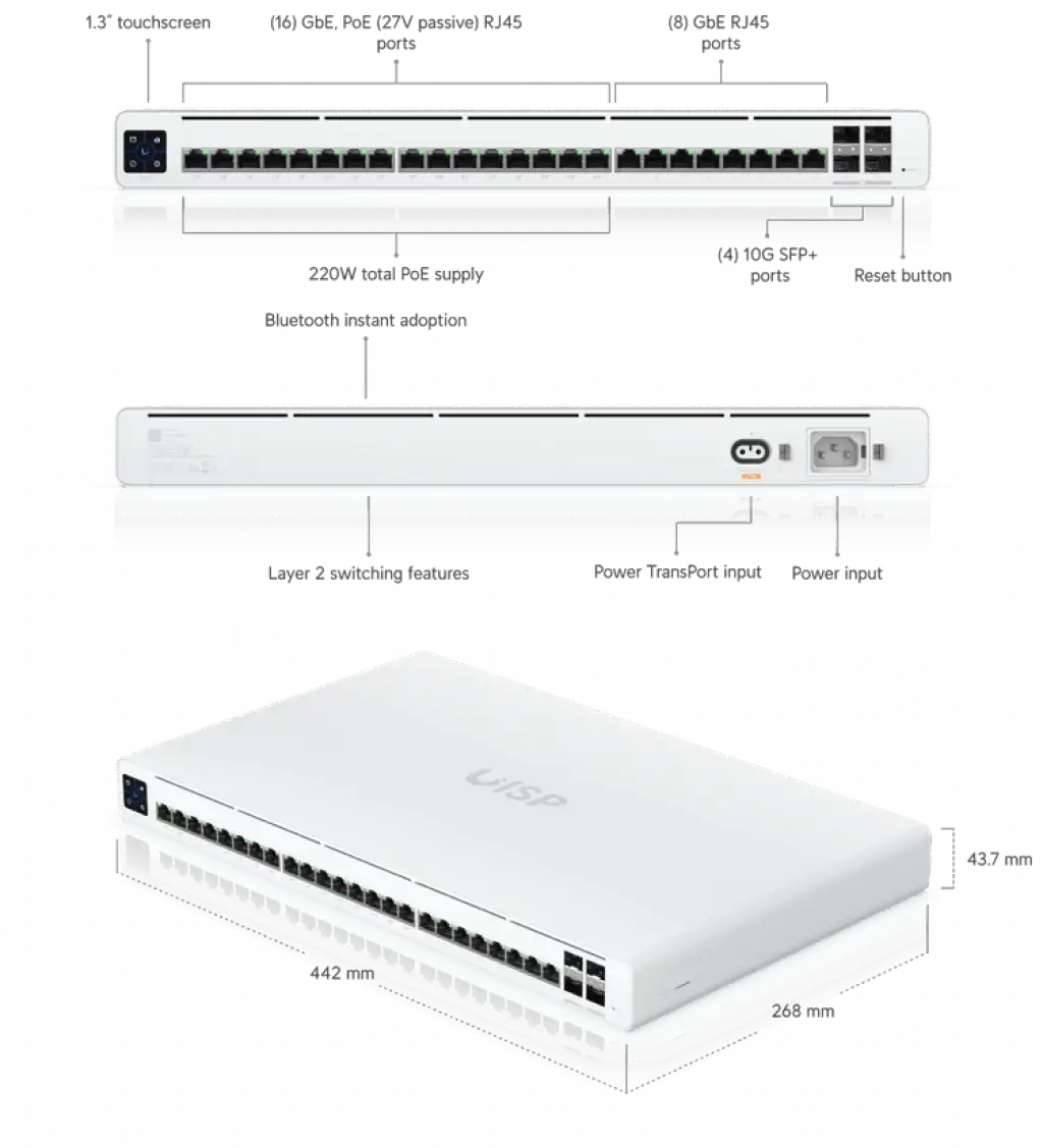 WISP dağıtım noktaları için özel olarak tasarlanmış, 220W toplam PoE gücü, Layer 3 özellikleri, 27V Pasif PoE desteği ve 10G SFP+ uplink'leri ile donatılmış, yüksek performanslı ve dayanıklı ağ anahtarı.