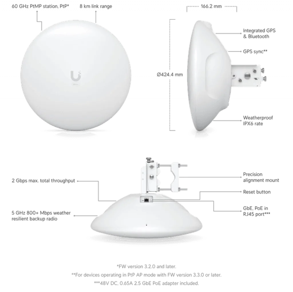 Wave AP baz istasyonlarına 8 km'nin üzerinde mesafelerden bağlanmak için tasarlanmış, entegre yüksek kazançlı çanak antene ve kesintisiz bağlantı için 5 GHz yedekleme özelliğine sahip, yüksek performanslı CPE (Müşteri Tarafı Cihazı).