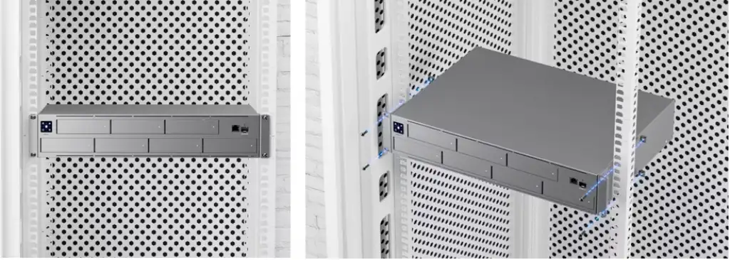 2U rack-mount NAS with (7) 2.5/3.5" drive bays and 10 Gbps performance designed for large-scale file storage and sharing.