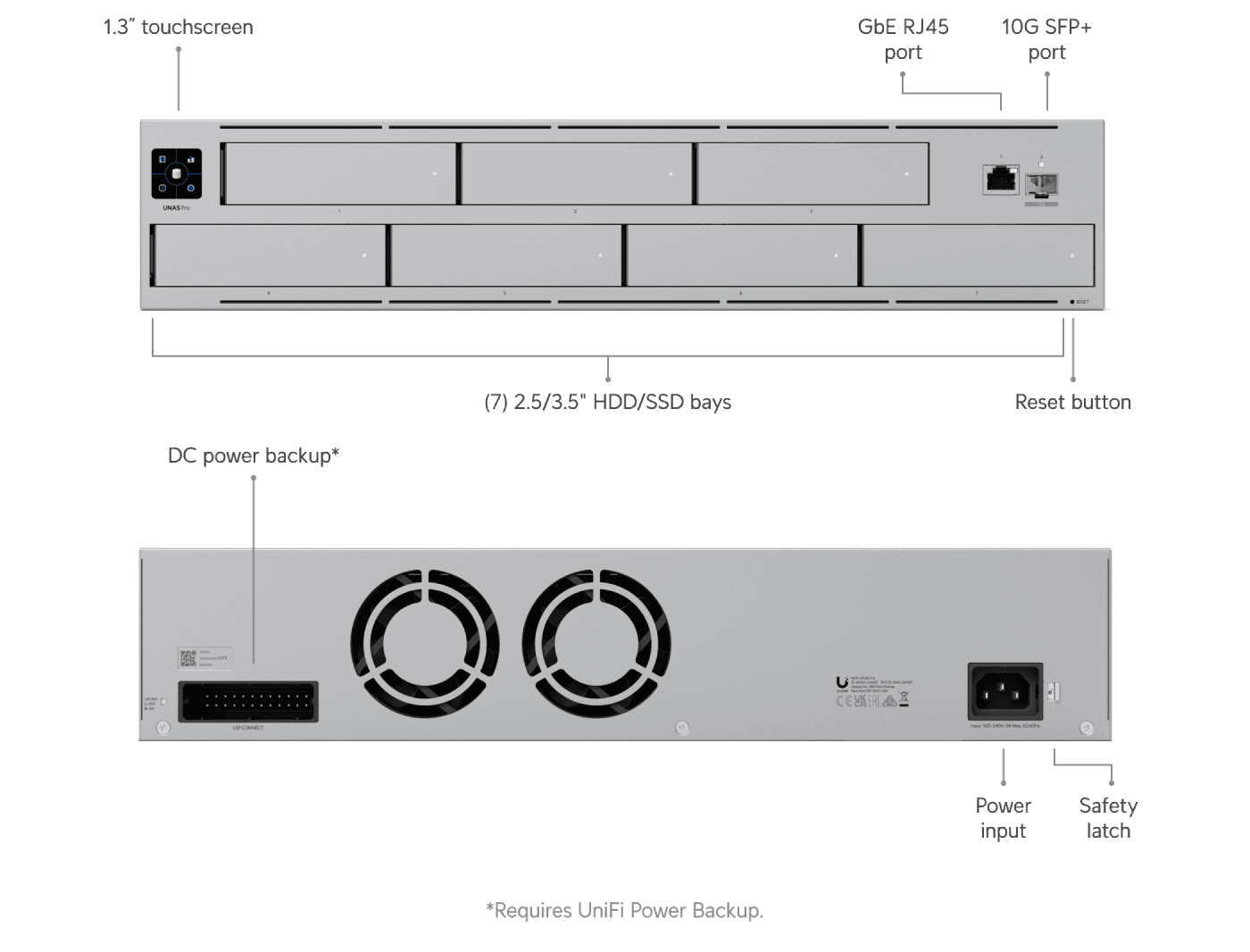 UNAS Pro, Ubiquiti tarafından üretilen, büyük ölçekli dosya depolama ve paylaşımı için tasarlanmış bir NAS cihazıdır. 7 adet sürücü yuvasına sahip olan UNAS Pro, hem raf tipi hem de çelik kasaya sahip modeller sunar. 2.5" ve 3.5" sürücüleri destekler ve 10 Gbps performans sunar. Bu özellikleriyle, yoğun veri trafiği olan ortamlarda verimli bir depolama çözümü sağlar.