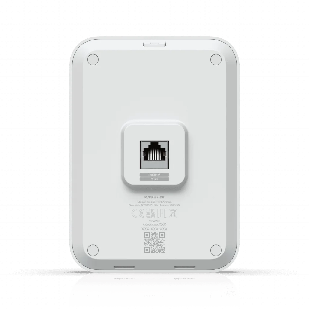 U7-Pro-Wall, özellikle oteller, yurtlar ve modern ofisler için tasarlanmıştır. Standart bir Ethernet duvar prizinin yerine monte edilir. Odaya hem en yeni teknoloji olan WiFi 7 ile kablosuz bağlantı sunar hem de dahili 4 portlu switch'i sayesinde TV, çalışma masası veya PoE destekli bir telefon gibi kablolu cihazlar için düzenli bir bağlantı noktası oluşturur.