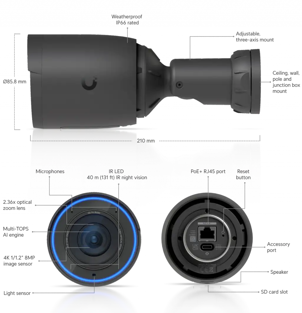 Sıradan dijital zoom kameraların çamurlaşan görüntülerini unutun! Fiziksel olarak yakınlaştırma yapabilen 2.36x Optik lensi, devasa 1/1.2" sensörü ve yapay zeka çipiyle araç plakalarını ve yüzleri uzak mesafelerden dahi saniyeler içinde okuyan caydırıcı kurşun tasarım.
