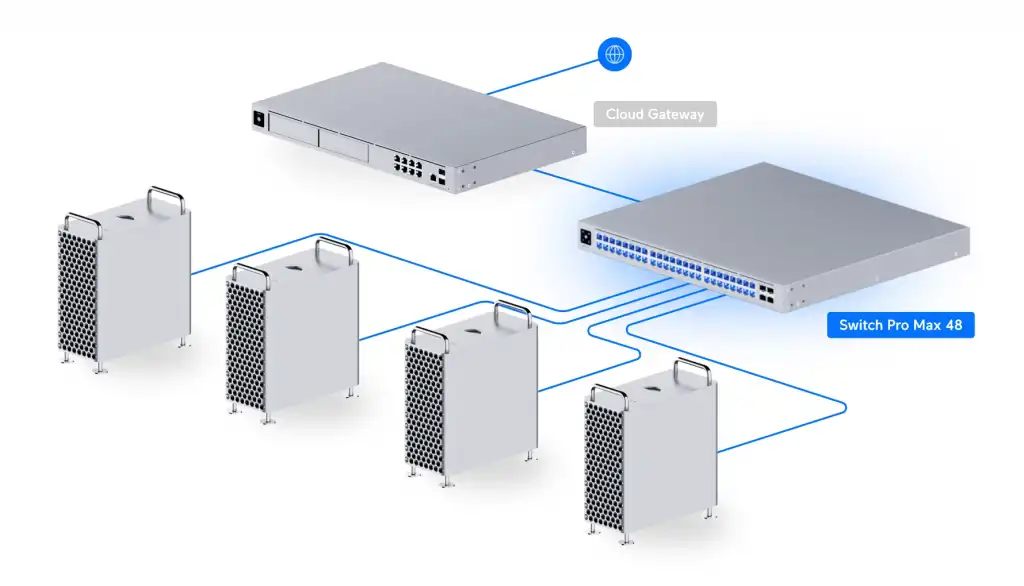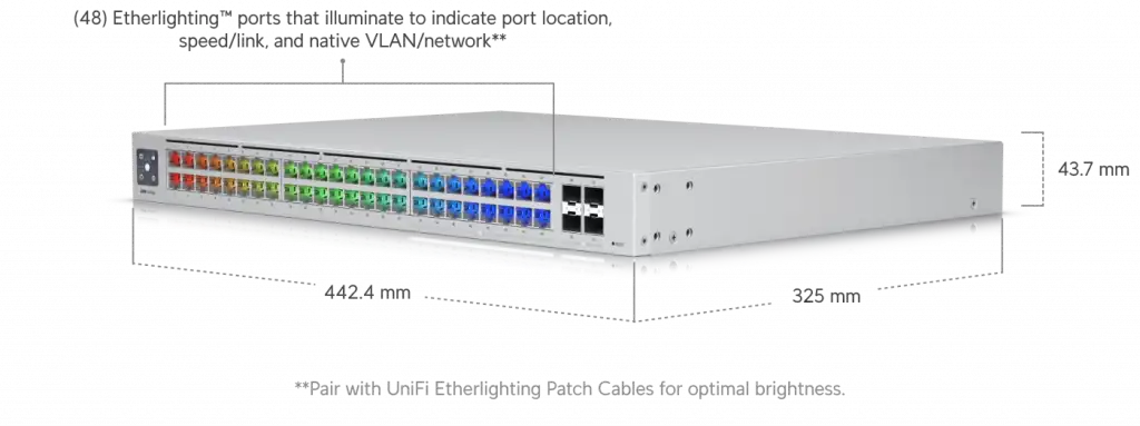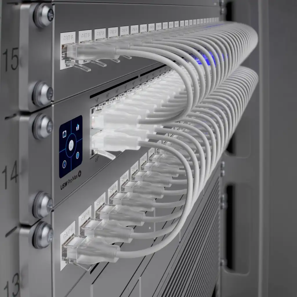 Pro-Max serisinin devrimsel Etherlighting™ teknolojisi sıradan bir switch'ten çok daha fazlasını sunar. Sitemizden temin edebileceğiniz UniFi Patch Panel ve Şeffaf Uçlu Etherlight Kabloları ile cihazı eşleştirdiğinizde, kabinleriniz aşağıdaki gibi ışıl ışıl, kurumsal ve mükemmel yönetilebilir bir hale bürünür.