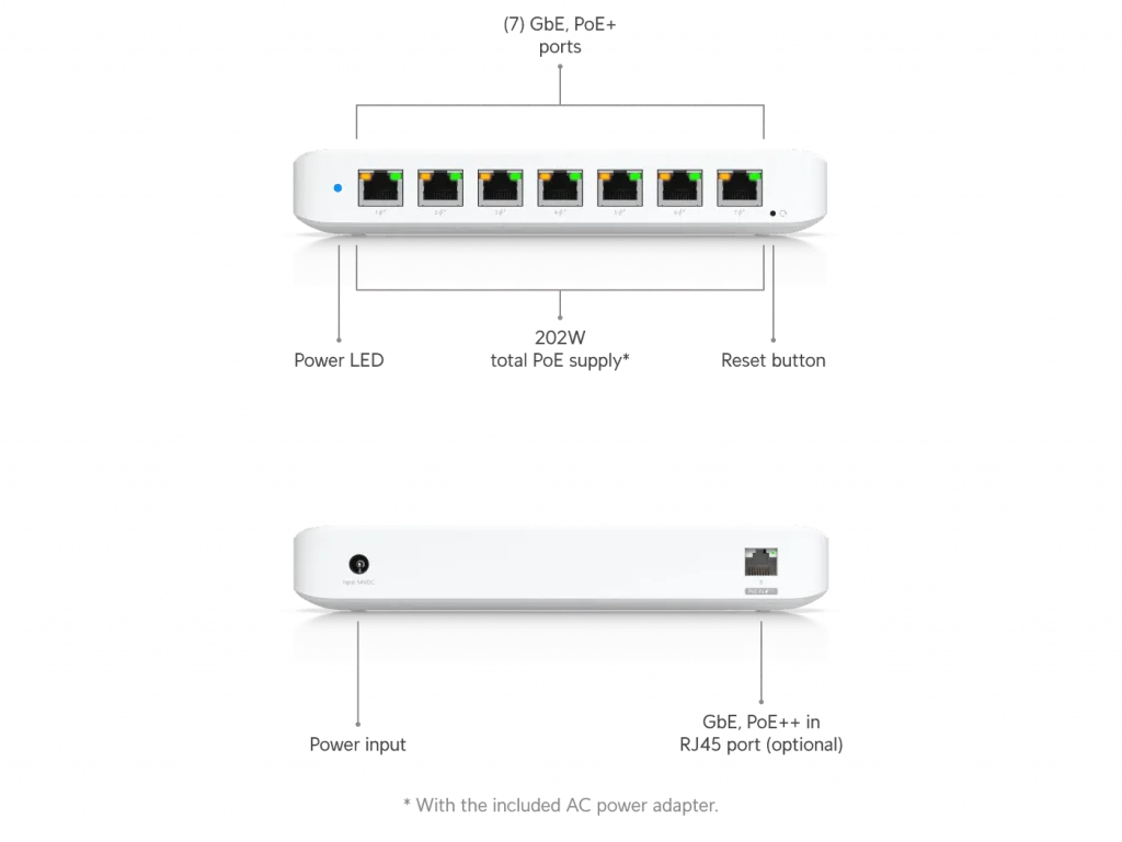 Rack kabinetlere sığmayan veya priz olmayan yerlere ağınızı ve gücünüzü taşıyın. Dahili 210W güç adaptörü ile 202W'a kadar PoE+ çıkışı sunan, 8-Port, kompakt ve yönetilebilir Layer 2 Switch.
