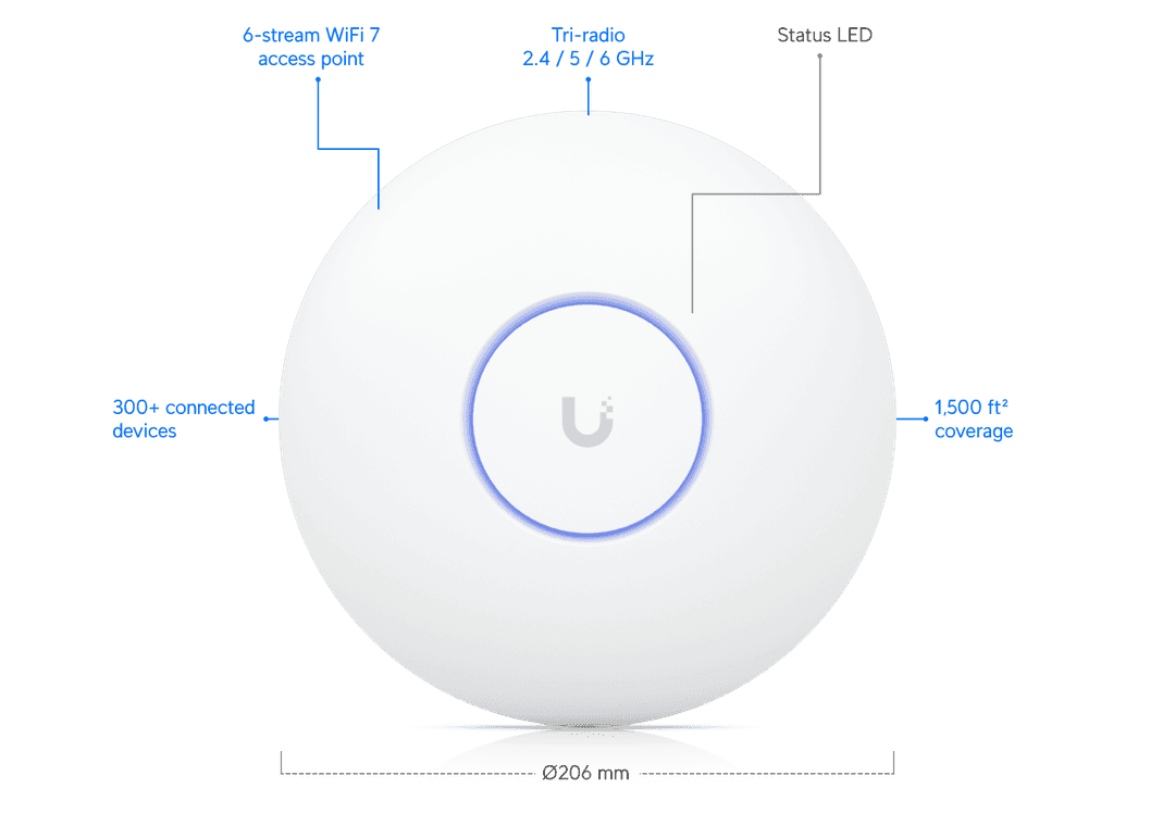 Kablosuz teknolojinin zirvesi. 6 GHz bandı, 320 MHz kanal genişliği ve 2.5 GbE uplink ile donatılmış, profesyoneller için tasarlanmış en yeni nesil Tri-Band WiFi 7 Access Point.