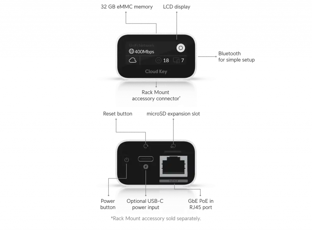 UniFi Cloud Key G2, UniFi ağınızı yönetmek için tasarlanmış, kompakt bir bilgisayardır. 8 çekirdekli işlemci, 2GB RAM ve 32GB eMMC flash depolamaya sahiptir. UniFi mobil uygulamaları üzerinden Bluetooth ile kolay kurulum imkanı sunar. Ayrıca, ağdaki UniFi cihazlarını tek bir platformdan izlemenizi ve yönetmenizi sağlar.