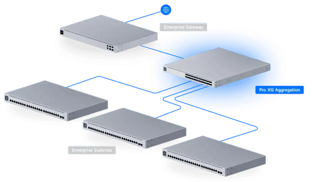 Standart Aggregation switchlerinde genellikle sadece 4 adet 25G portu bulunur ve geri kalanı 10G'dir. Bu durum, çok sayıda yüksek hızlı sunucu (Server) veya NVMe depolama (UNAS Pro) barındıran veri merkezleri için yetersiz kalabilir.